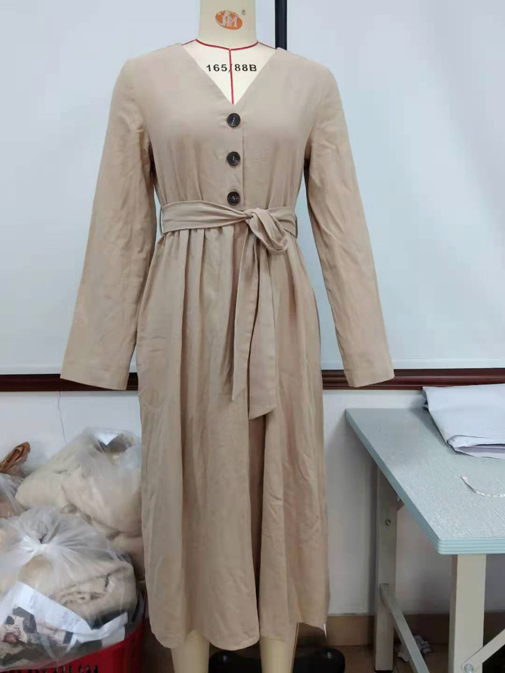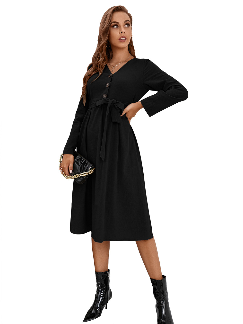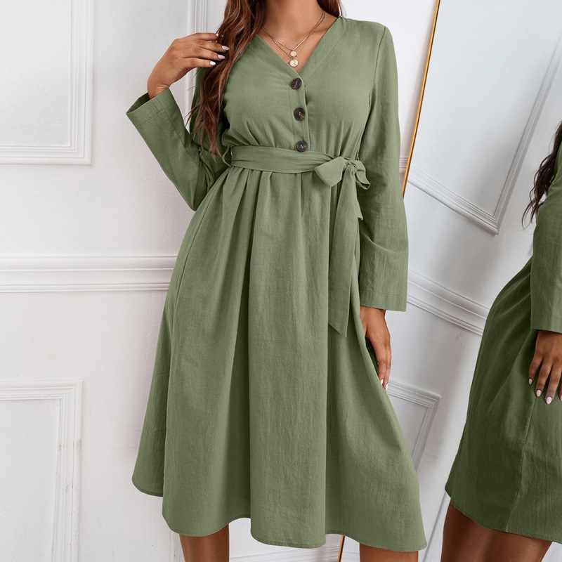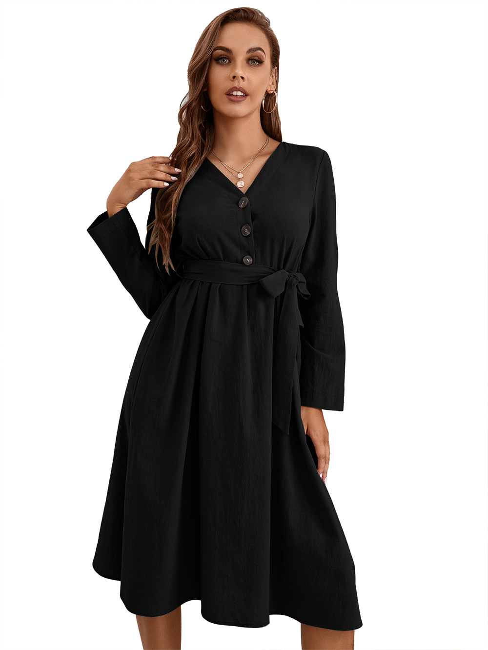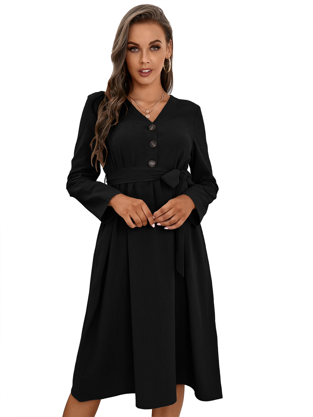 Bow Tie Tie Waist Slimming Single-breasted V-neck Long Sleeve Women