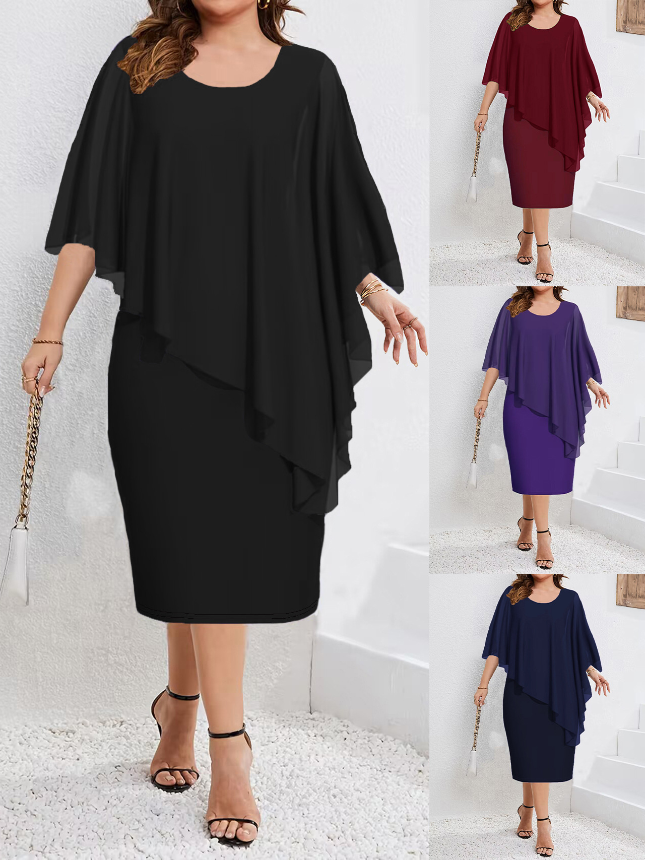 European And American Solid Color Sleeveless Chiffon Shawl Hip Fashion Dress